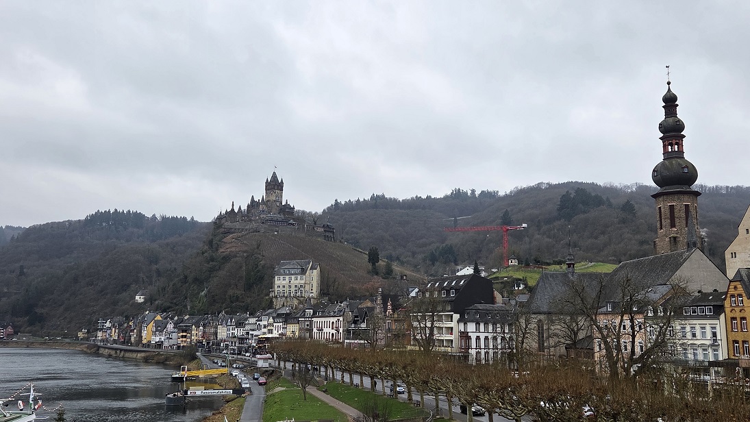 An Neujahr folgen wir der Empfehlung der netten Damen im Friseursalon und machen einen Ausflug ins Moseltal bis Cochem. Das Moseltal ist sehr idyllisch und Cochem eine Bilderbuchkulisse, die im Sommer mit Sicherheit von Touristen überrannt wird. Heute ist wenig los und wir genießen einen Kaffee mit Ausblick auf der Burg.