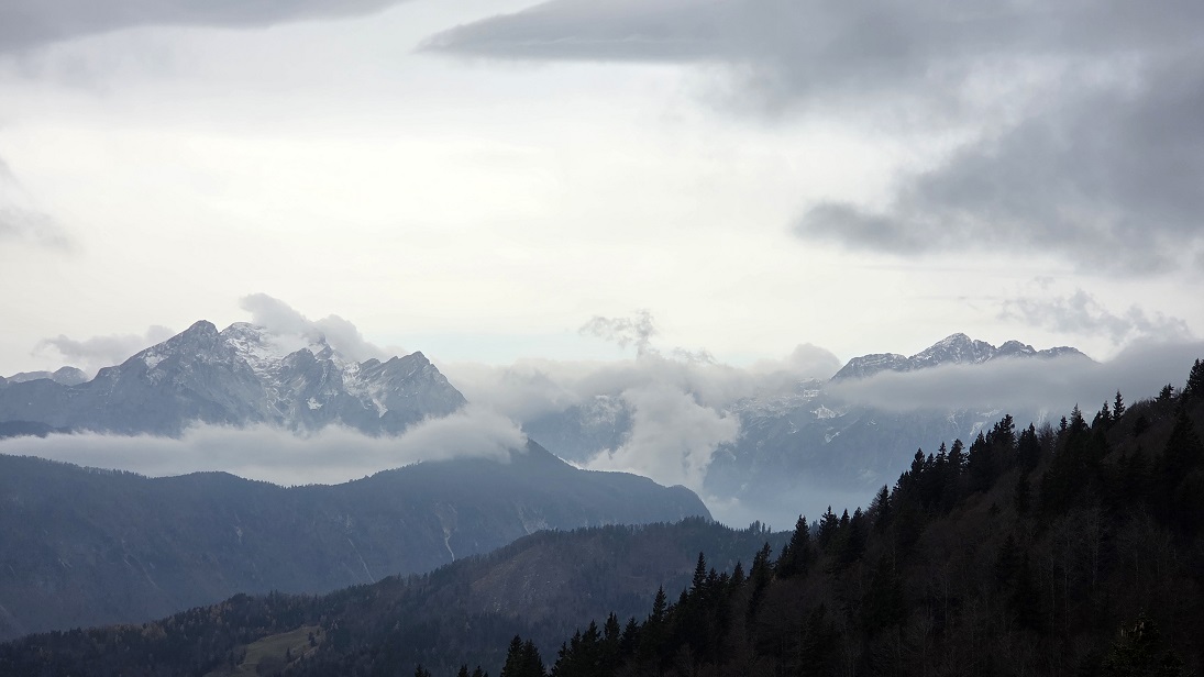 Die erste Tour führt uns am Freitag auf den 1.265 m hohen Galetovec. Der Aufstieg führt uns von Bohinjska Bela über schöne Almen und den 1.250 m hohen Turn zum Aussichtspunkt. Hier hätte man theoretisch einen tollen Blick in die Karawanken und zum Bleder See. Praktisch sind wir leider ziemlich in den Wolken und sehen nicht allzu viel...