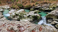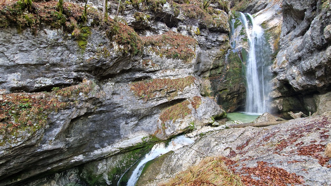 Für Sonntag ist Regen angekündigt, deswegen planen wir keine Bergtour. Mit dem Auto fahren wir zum Bohinjsko Jezero und steigen dort zunächst an der Mostnica entlang Richtung Wasserfall hoch. Das Tal ist ein Traum, der kleine, smaragdgrüne Fluss hat sich eine tiefe Schlucht gegraben und hinter jeder Kurve ein neuer, toller Blick.