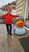 Auch für den Hochzeitstag am Montag ist Regen angekündigt und wir machen einen Ausflug nach Ljubljana. Am Vormittag ist es noch recht schön und wir erkunden die Stadt, fahren mit der Bahn zur Burg hoch und klappern die wenigen Outdoorläden ab, leider erfolglos. Aber wenigstens gibt es einen Entenladen, den wir natürlich plündern.
