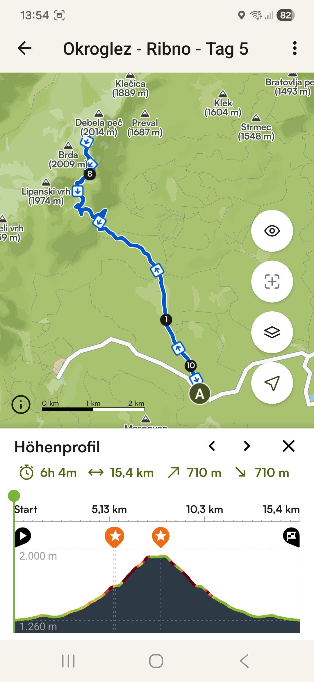 Eine letzte, überraschend alpine Challenge ist der Anstieg auf den Ribenska gora, den Hügel hinter unserem Hotel. Über einen seilversicherten Grat kommt man zum Gipfel mit der slowenischen Fahne. Von hier könnte man sogar den Triglav sehen, der ist nur leider wieder in Wolken. Über nette Serpentinen geht es dann zurück zum Hotel. Toller Abschluss unseres Wanderurlaubs in Slowenien!